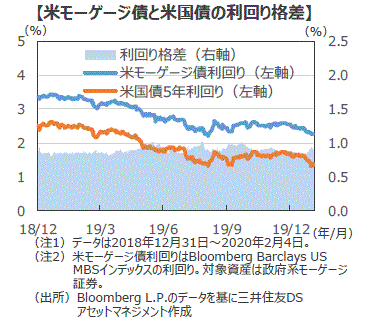■今年の世界経済は米中関税引き上げの動きが一巡する中、緩やかに回復すると予想します。米国の金融政策は、インフレ率が低位で推移しているため、長期間緩和的な政策が維持される見通しです。従って、米国の長期金利は徐々に上昇するものの、その上昇幅は限定的なものに留まるとみられます。新型肺炎の感染拡大が世界景気に与える影響を見極める必要はありますが、今後もモーゲージ債市場は底堅い展開が予想されます。
