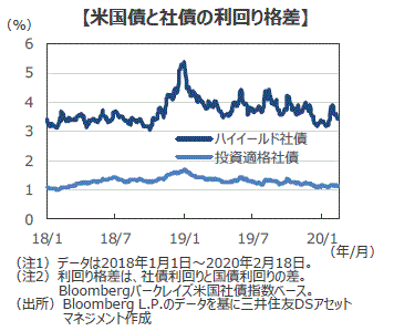 ■新型肺炎の影響には注意が必要ですが、米国は影響が比較的軽微であると考えられるほか、仮に企業業績に影響を及ぼす程度になった場合でも、FRBによる一層の金融緩和などが期待され、社債市場の下支えになると考えられます。