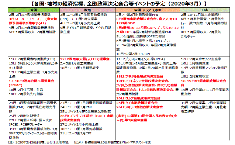 ■米国では大統領選挙の候補者選びのプロセスが進んでいます。特に、スーパー・チューズデーに向けて民主党各候補がしのぎを削っています。足元では左派のサンダース上院議員の優勢が伝えられていますが、中道派バイデン前副大統領などとの差がどうなるかが注目されます。