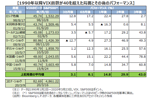 1990年以降、VIX指数が40を超えたのは今回が8回目