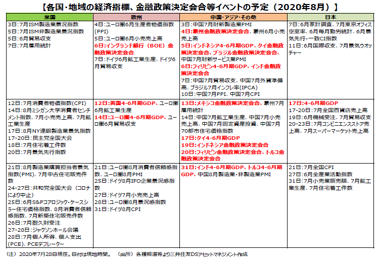 ■新型コロナ問題は中国など一部の国では感染抑制策が機能している一方で、米国やスペインなどでは感染再拡大の様相を示している他、多くの新興国では新規感染が拡大傾向にあり、終息のめどはまだ立っていません。日米欧や中国などで進められているワクチン開発の進捗が注目されます。各国・地域では引き続き緩和的な金融政策が継続され、感染再拡大などで足踏みする経済への追加支援が打ち出されるとみられます。