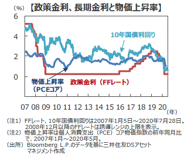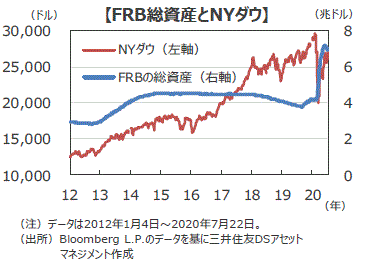 ■会合後の記者会見でパウエル議長は、「この数カ月、経済再開で経済活動は持ち直してきたが、6月半ばから新型コロナの感染が急増し、足元、経済に影響を与え始めている」と懸念を表明し、9月の次回会合で量的緩和の拡充やフォワード・ガイダンスの導入など追加策を検討する考えを示唆しました。