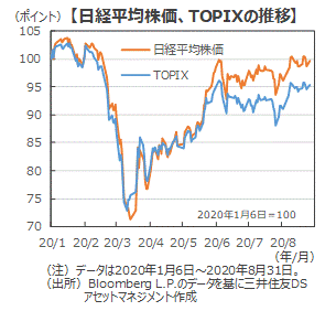 ■外交では、米中対立は経済分野のみならず安全保障の面にも影響が及ぶため、11月の米国大統領選挙後には改めて日米の連携強化が課題になります。また、来年9月末で自民党総裁は任期が満了となり、10月には衆議院議員の任期も満了となります。新政権は極めて限られた時間で一定の成果を出せなければ、支持率の低下を招きかねません。堅調な米経済と米株式市場が支えになると期待されますが、今後の政策運営いかんでは日本株式市場は振れの大きな展開になると考えられます。