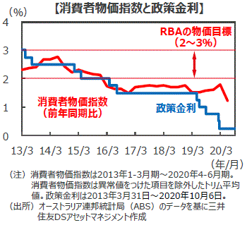 ■豪州準備銀行(RBA)は、10月6日に開催した金融政策決定会合で、政策金利のキャッシュレート及び3年国債の利回り目標を0.25%に据え置きました。当初市場では、8、9月会合において緩和的な姿勢を強めていたことにより、今会合における追加緩和が予想されていました。しかし、その後RBAは連邦政府予算案の内容を見極める意向との見方が強まり、市場予想も据え置きへとシフトしていました。