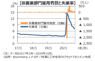 ■米国では投票日からバイデン候補の当選が確実になった7日までの間に、金融市場が注目する米連邦公開市場委員会(FOMC)と雇用統計の発表がありました。いずれも、米国経済が抱える問題を浮き彫りにしていて、すなわちバイデン新大統領の課題となります。