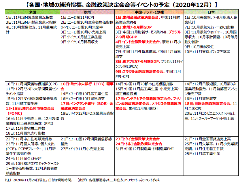 ■米大統領選挙では民主党のバイデン氏が勝利し、「バイデン大統領+上院共和党+下院民主党」となる見通しです。この場合大規模な財政拡張は難しく、成長の押し上げは限定的とみられます。また、新型コロナによる新規感染が拡大しており、10-12月期の経済活動は鈍化すると予想されます。一方、これまでの行動制限の効果やワクチン接種が始まるため、景気の悪化は一定程度に収まると期待されます。