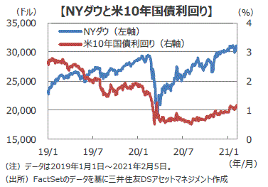 ■米株式市場は、足元の堅調な業績に加え、今後ワクチン接種が加速し、コロナ感染が収束に向かうとの期待や、バイデン大統領の大型追加経済対策への期待などから、基調は強いとみられます。