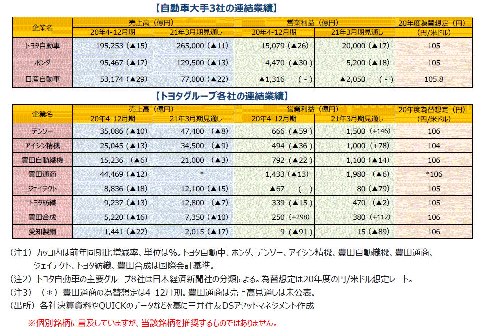 ■トヨタグループの主要8社の4-12月期の連結決算は、新型コロナの影響による世界的な自動車販売減少から7社が営業減益となりました。一方でトヨタ自動車の生産拡大などを受けて7社が2020年度通期の営業利益の見通しを上方修正しました。