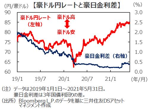 ■なお、7月の次回会合では、時間経過に伴って短期化している3年国債利回り目標の対象を、2024年4月償還国債から2024年11月償還国債に延長するかが議論されます。延長されなければ緩和縮小に備えた動きと市場に解釈されると考えられます。RBAは貸出プログラムについても予定通り6月中に終了させる方針を示しており、堅調な景気を受けて金融緩和からの慎重な脱却が視野に入っています。