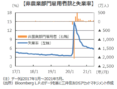 ■米国ではワクチン接種が進み、経済再開も順調です。バイデン政権による大型景気対策の効果もあらわれてきています。こうしたことから今後も雇用の回復は続くと見ています。