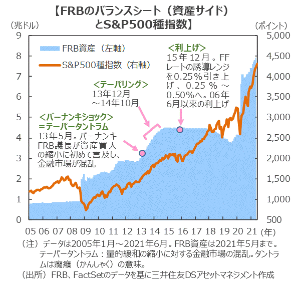 ■また、米国の金融政策の正常化は着実に進む見通しです。タカ派的なスタンスを市場は織り込もうとしており、米連邦準備制度理事会(FRB)が決断すれば、市場の不透明感は一旦解消すると考えられます。2013年12月から2014年10月の資産買入縮小局面でも月次ベースで見ると米株は上昇しています。