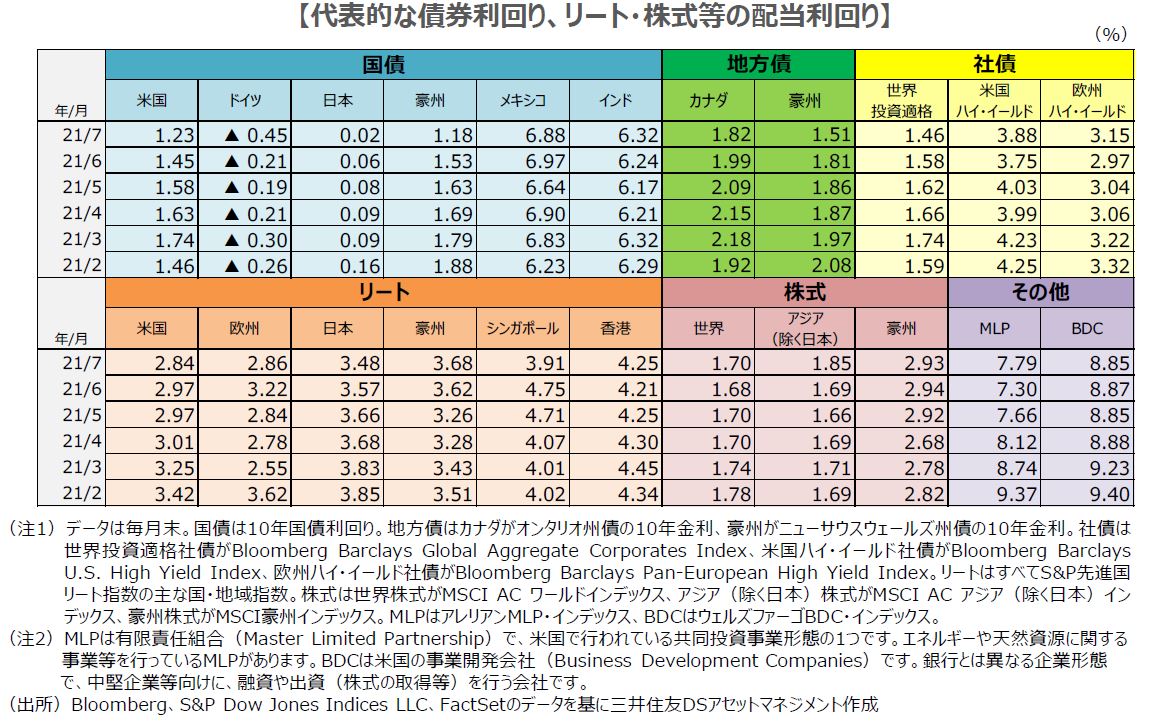 主要な資産の利回り比較(2021年7月)