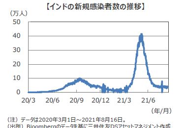 ■こうした中で、インド株が最高値を更新しているのは、インドの新規感染者数が5月上旬の40万人から急減し、足元は3~4万人程度で比較的落ち着いていることがあります。また、中国の影響を受けにくいインド株がアジアの中で選好されているとみられます。