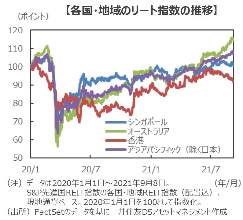 ■香港リート市場は、中国国内における新型コロナウイルスの感染拡大や、中国当局による規制強化に対する懸念から下落しました。
