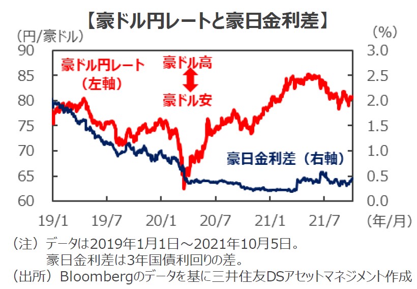 ■今回の決定を受けて10月5日の為替市場で豪ドルは米ドル、円に対して小動きとなりました。RBAによる金融緩和からの脱却姿勢が豪ドルを下支えする一方、市場は資産買入れ縮小(テーパリング)のペースが緩やかな点も意識しています。