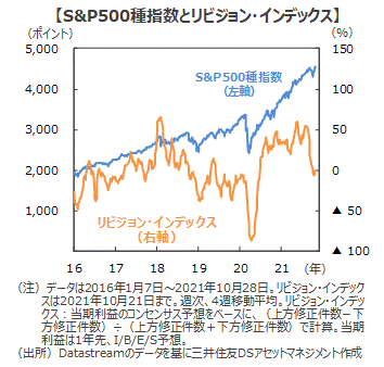 ■米国株式市場は、リビジョン・インデックスがプラスでなくても増益基調が維持されれば総じて堅調に推移するため、過度に懸念する必要はありません。一方、リビジョン・インデックスが上昇に転じれば米国株式市場にとっては追い風になります。今後、その可能性はあると考えられます。