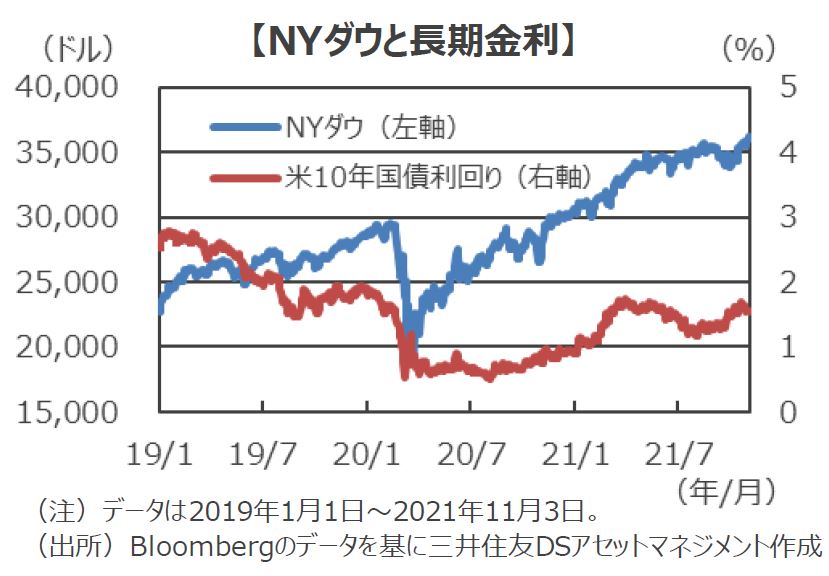 ■3日の米国市場では、株式市場は主要指数がそろって過去最高値を更新し、債券利回りも上昇しました。テーパリングが開始されることは市場の想定通りでしたが、利上げへの慎重姿勢が意識されたことや、経済指標が良好だったこともあってリスク選好的な動きとなりました。