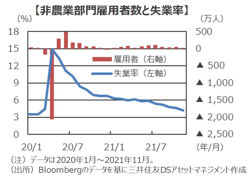■今回の雇用統計では雇用者数と失業率がまちまちの内容となっていますが、総じて雇用の回復持続が示されており、米連邦準備制度理事会(FRB)のパウエル議長が12月の米連邦公開市場委員会(FOMC)で検討すると述べている資産買入れ縮小(テーパリング)の加速と整合的な内容となっています。