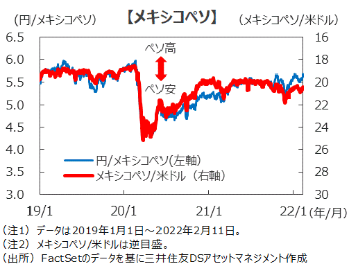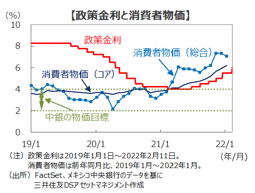 ■高水準のインフレや米国での金融政策のタカ派転換から、中銀は市場の安定を維持するため、先手先手での利上げを継続するものと思われます。このためメキシコの政策金利は、今年の年末までには7%まで上昇するものと予想しています。