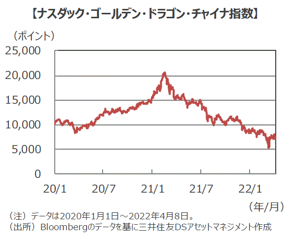 ■21年12月には米証券取引委員会(SEC)が米国に上場する外国企業向けの新規則を設け、当局検査を受け入れない場合、24年までに上場廃止になる可能性が浮上したため、下げが加速しました。