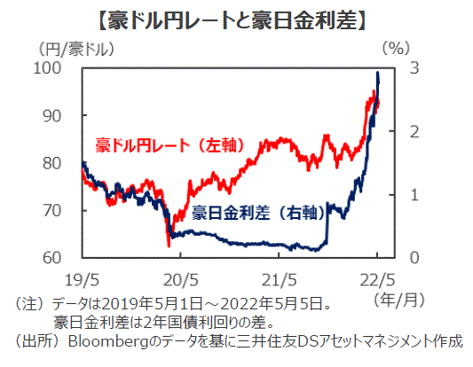 ■今後も堅調な経済成長と失業率の改善が見込まれていることに加え、ウクライナ情勢などから資源価格の高止まりが続くと見られる為、インフレ率も高い水準で推移すると見込まれます。RBAは金融政策の正常化プロセスを開始すると述べていることからも、今後も中立的な金利水準に向けて継続的な利上げが見込まれます。