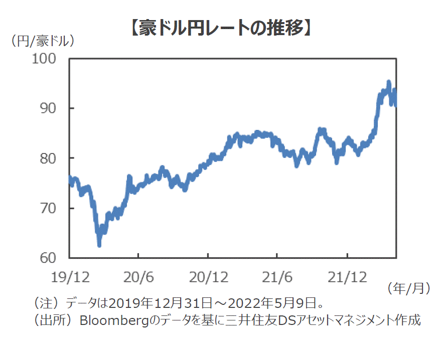オーストラリア経済が順調に回復しています。資源高によるインフレや米国による急速な金融引き締めから、世界経済の先行きには不透明感が漂っていますが、オーストラリアでは順調な内需に支えられた景気回復が続いています。また、昨年来急速に進んだ資源高もあり、豪ドルは主要通貨に対して堅調に推移しており、対円では4月20日に2015年6月以来の約7年ぶりの高値をつけました。