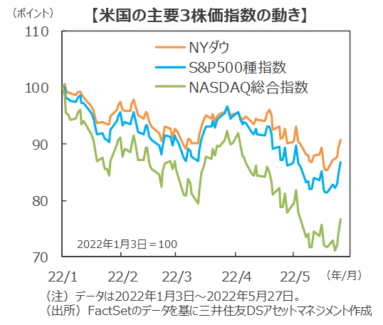 ■これまで大幅な下落が続いていたことで、底打ち期待が醸成される中、先週発表された企業決算が概ね良好だったことや4月の個人消費支出(PCE)価格指数の上昇が鈍り、インフレに安定の兆候が見られたことなどがサポート要因となりました。