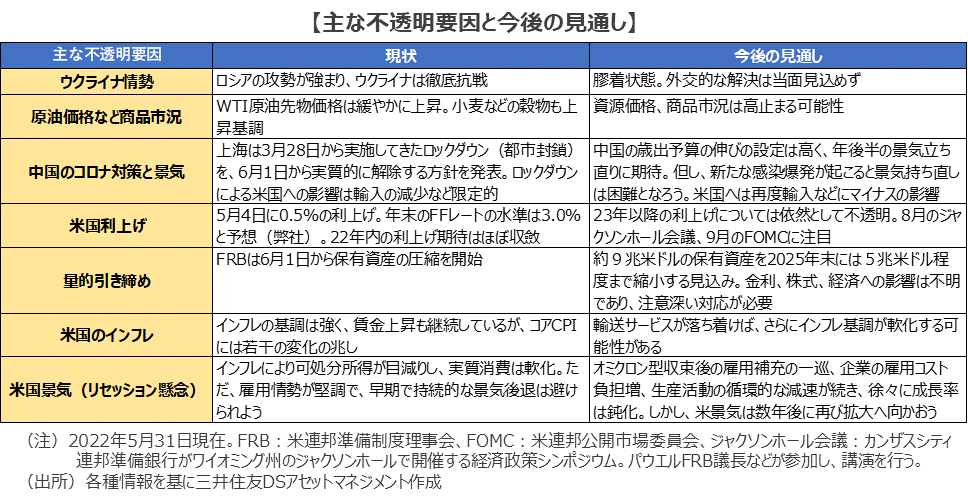 ■下表の不透明要因は、推移が明らかになるのに時間を要するものが多くなっています。このため、当面、不透明感が払しょくされない状況が想定されます。