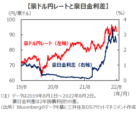 ■利上げは概ね市場予想の通りでしたが、RBAがややハト派的なスタンスを示したことから、会合後の為替市場では豪ドル安・円高となりました。しかし、その後、米連邦準備制度理事会(FRB)の高官から米利上げに強気な発言が聞かれたことで米ドル高・円安となり、豪ドルの対円レートも会合前の水準に戻っています。今後もRBAの引き締め的なスタンスは続くと見られ、対円で豪ドルは堅調な展開となることが見込まれます。