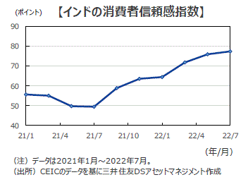 ■また、インドの消費者信頼感指数も改善傾向が続いています。消費者センチメントの改善は、コロナ禍からの回復によるリベンジ消費の流れを促進すると考えられます。経済正常化に伴い、消費にけん引され、循環的な景気回復は続くとみています。