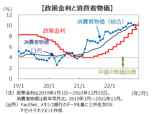 ■メキシコ銀行(中央銀行、中銀)は12月15日に金融政策決定会合を開き、政策金利を10%から10.5%に引き上げました。