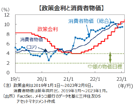 ■メキシコ銀行(中央銀行、中銀)は2月9日に金融政策決定会合を開き、政策金利を10.5%から11.0%に引き上げました。