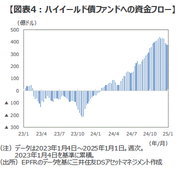 ■ハイイールド債の利回りが依然として高水準にあるなか、景気が底堅く推移し、企業の信用リスクが安定しているため、投資マネーがハイイールド債市場に大きく流入しています。