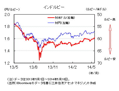 これまでのルピー高要因に加え、政治的な要因も、ルピーの支援材料になりそうです。ただし、RBIは急激なルピー高を抑制すると見られることから、ルピーの上昇は比較的緩やかになる可能性があります。