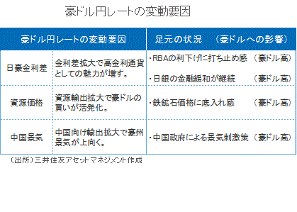 ■資源価格の下落などを背景に豪州の金利が低下し、日豪金利差は低下傾向にありました。豪州の利下げ期待が一旦後退したことに加え、日銀の金融緩和の継続もあり、日豪金利差は、当面安定的に推移しそうです。