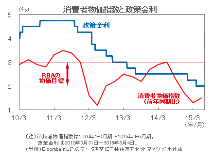 ■景気は、これまでの利下げ効果などから、消費と住宅投資がけん引し緩やかに回復する見通しです。RBAは、前々回会合の議事録で、景気は過去のトレンド成長を当面下回るが、「2016年前半に向け上向く」と予想しています。今回もこの見方が踏襲されたと見られます。