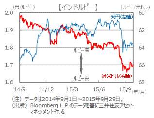 ■中国景気の減速などからリスク回避の動きが強まり、インドルピーなど新興国通貨が大きく下落しています。RBIの利下げはルピー安要因にもなりますが、政府と歩調を合わせた景気支援策の効果に期待が高まれば、ルピーは安定化に向かうと思われます。