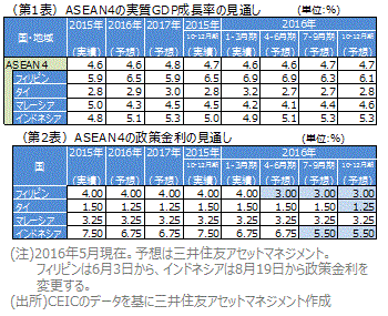 インドネシア・・・16年1Qは同+4.9%と前期を下回ったものの、今後は民間投資も強まると期待され、下期に向け持ち直しが予想されます。
