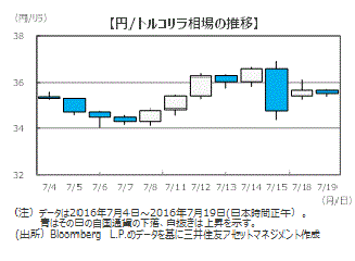 ■クーデターが比較的短期間で収まったため、リラ相場はその後反発し、今のところ当初の下落を半分ほど埋める程度に回復しています。また、世界的にも金融市場の混乱には結びつかず、今回のクーデター未遂事件の影響はかなり限定的なものにとどまったと言えます。