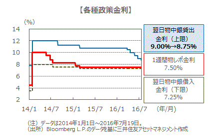 ■一方、主要な政策金利である1週間物レポ金利は7.50%に、金利誘導レンジの下限の翌日物中銀借入金利は7.25%に、それぞれ据え置きました。