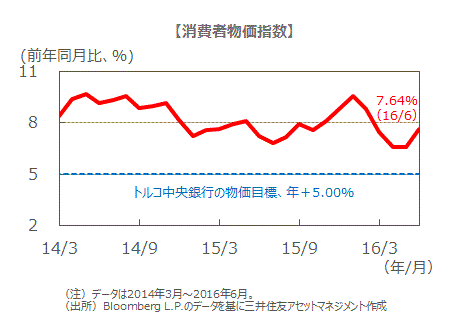 ■トルコ中央銀行(以下、中銀)は19日、金利誘導レンジ上限の翌日物貸出金利を0.25%引き下げ、8.75%とすることを発表しました。5カ月連続の翌日物貸出金利引き下げです。中銀は、「最近、国内の出来事が市場の変動を引き起こした」と15日に起きたクーデター未遂に言及し、流動性供給が市場変動を和らげたと説明しました。