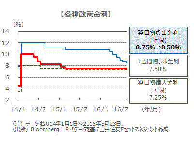 ■一方、主要な政策金利である1週間物レポ金利は7.50%に、金利誘導レンジの下限の翌日物借入金利は7.25%に、それぞれ据え置きました。