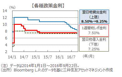 ■一方、主要な政策金利である1週間物レポ金利は7.50%に、金利誘導レンジの下限の翌日物借入金利は7.25%に、それぞれ据え置きました。
