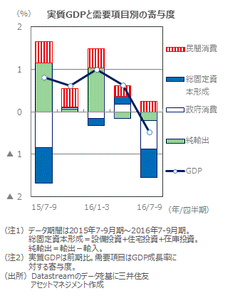 ■資源価格の下落により資源セクターの設備投資が大きく落ち込んだうえ、輸出が伸び悩んだこと、政府支出が減少したことが主な要因です。