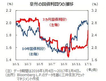 ■しかし、年の後半は、8月にRBAが追加利下げを実施したものの(1.75%→1.50%)、米国経済が持ち直してきたうえに、米大統領選で、財政支出拡大による景気刺激を唱えるトランプ候補が勝利したことを受け、豪州の国債利回りは上昇しました。