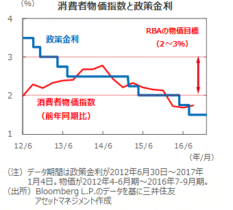 ■RBAは、今後しばらく政策金利を現行の1.50%で据え置く見通しです。17年後半にかけて消費者物価上昇率が加速する見通しだからです。