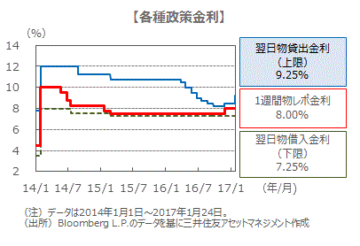 ■ただし、1週間物レポ金利と翌日物借入金利はそれぞれ8.00%、7.25%で据え置かれました。市場ではレポ金利が0.50%、借入金利が0.25%引き