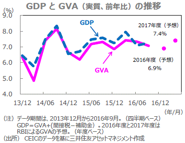■RBI は、GVA ( 粗付加価値) 成長率の2017/18年度見通しを7.4%とし、2016/17年度見通しの6.9%から加速すると想定しています。