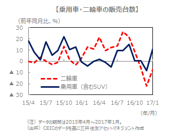 ■高額紙幣廃止・交換に伴う混乱は、17年1-3月期で終息する見込みです。実際、新紙幣の供給は順調に推移しているといわれるほか、乗用車や二輪車の販売も底入れしたもようです。混乱の終息とともにインドの景気は再加速し、2018年3月に終わる2017/18年度の経済成長率は+8%台に到達する可能性もあると考えられます。