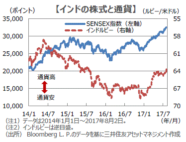 ■良好な経済、インフレ環境やRBIの柔軟な金融政策に加え、7月導入の物品・サービス税(GST)など経済改革も着実に進んでいることから、今後もインド市場は堅調地合いを維持しそうです。